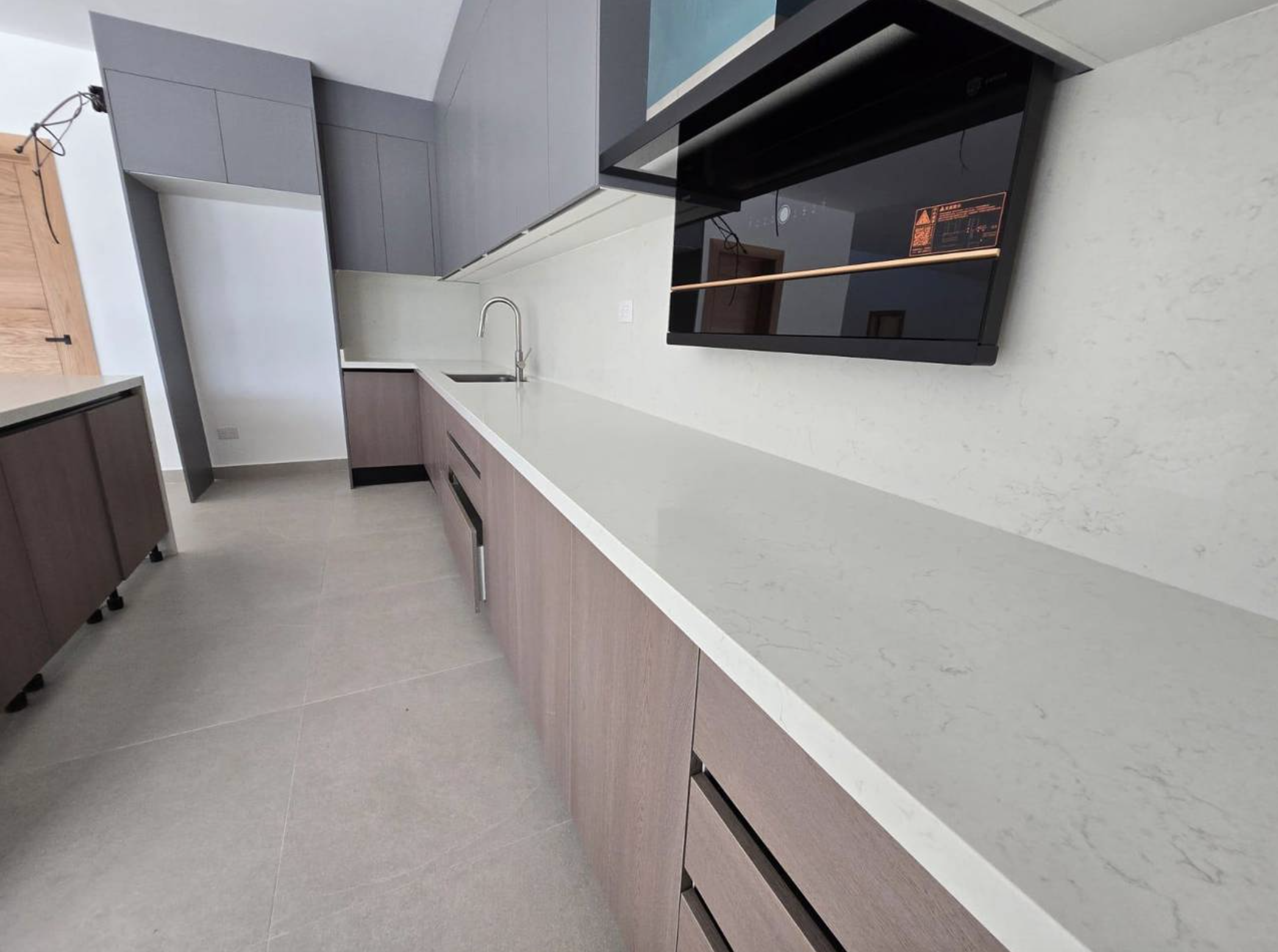 Al ingresar, la elegancia se percibe en cada detalle: puerta de acceso y fachada revestidas en madera de camarú, interiores con puertas en madera de roble, y una ambientación que destaca por el refinamiento del porcelanato español Argenta en pisos y paredes, la zona de baños impresiona por su modernidad, incorporando platos de ducha en corian Poalgi y grifería de lujo Grohe, garantizando estilo y durabilidad.
